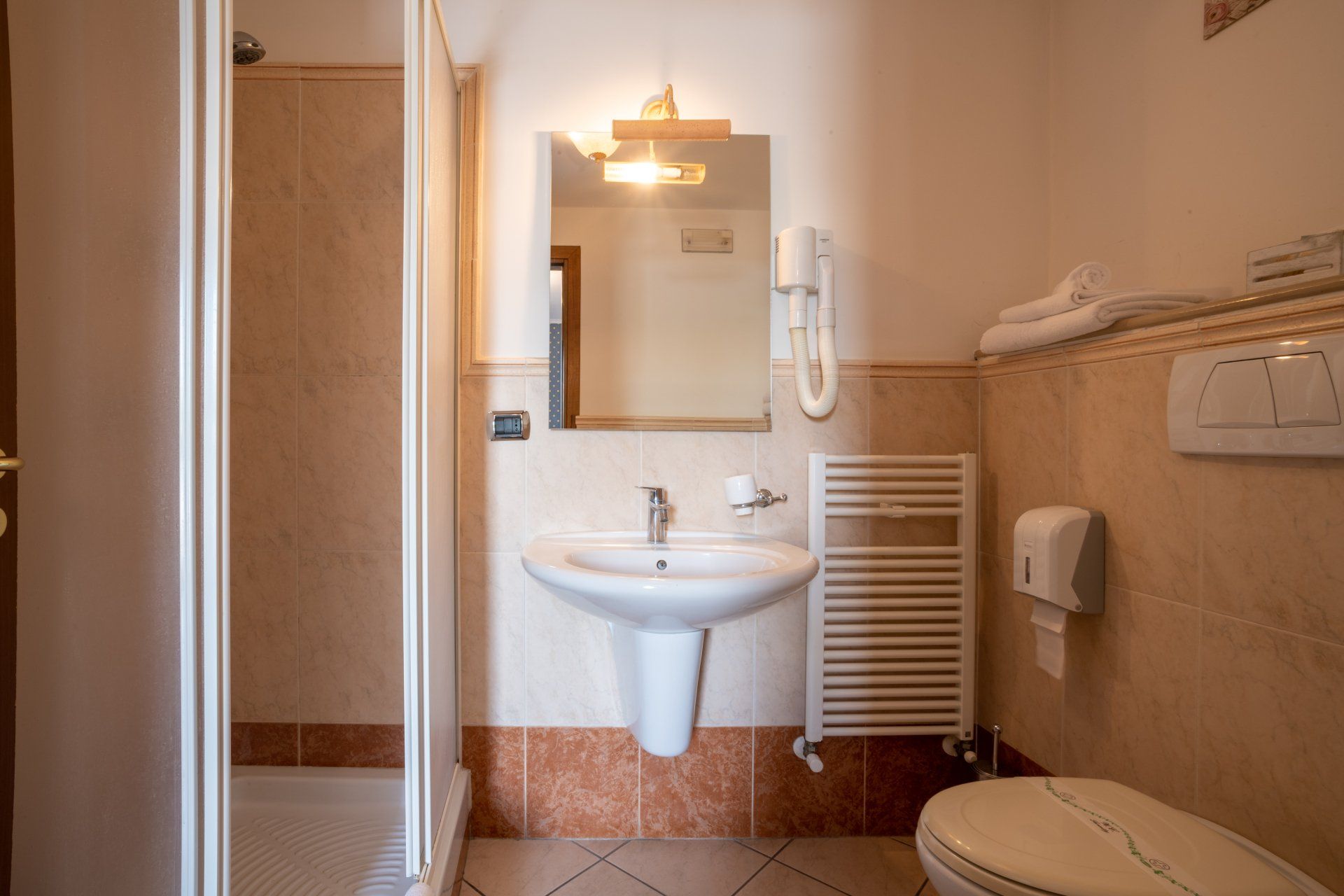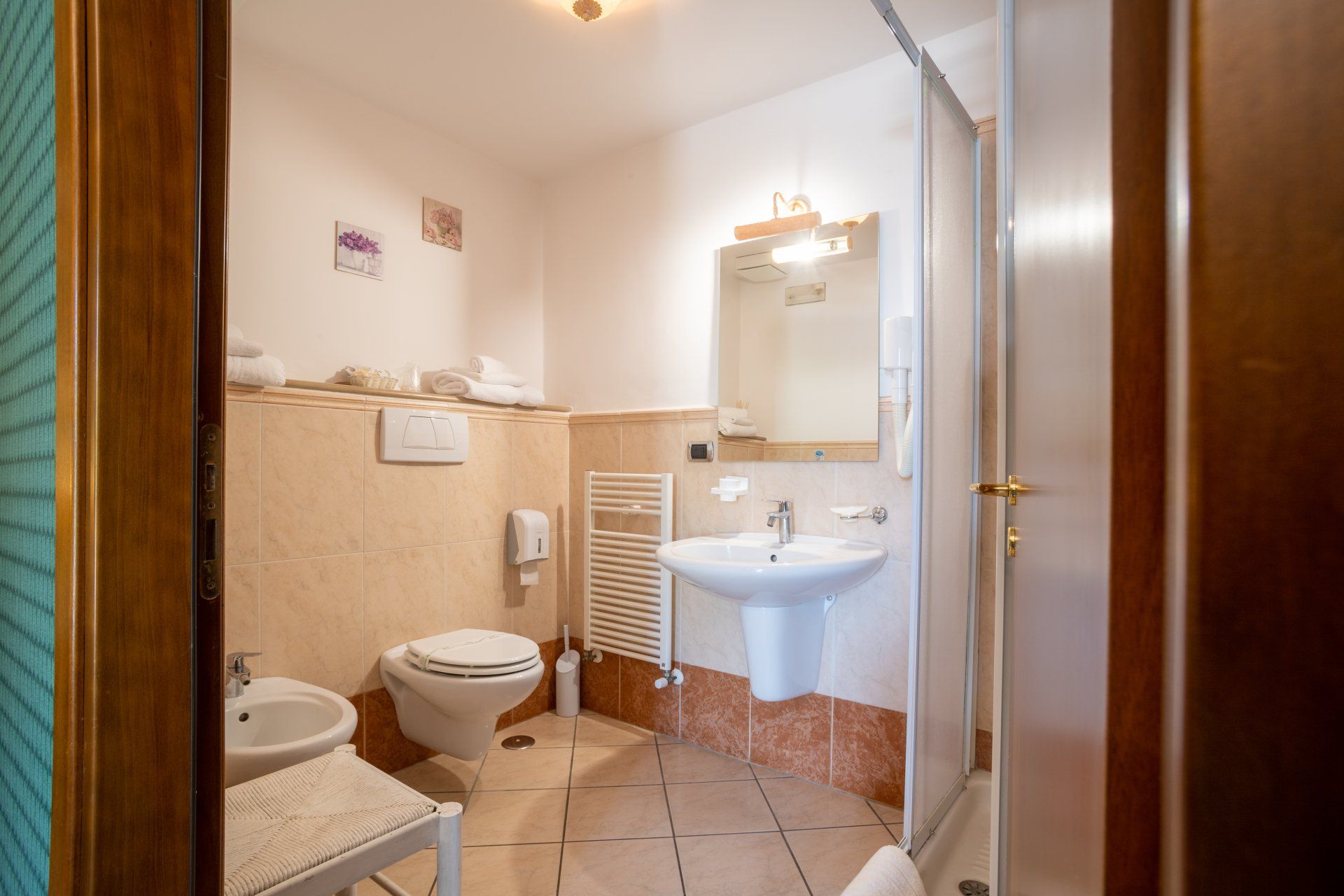 Bagno con box doccia, senza Bidet, ma con doccino.